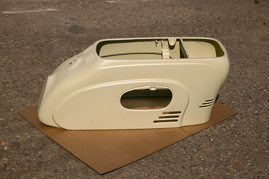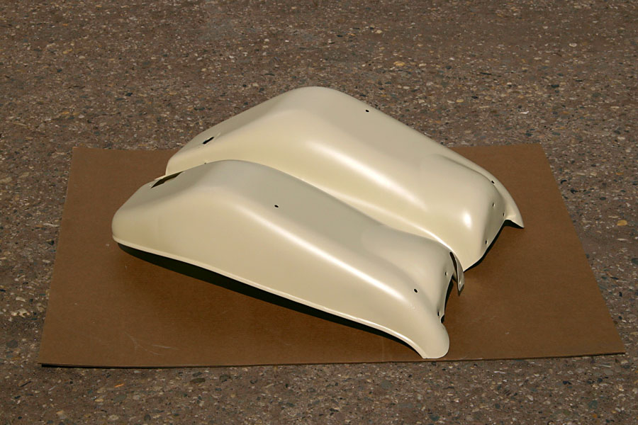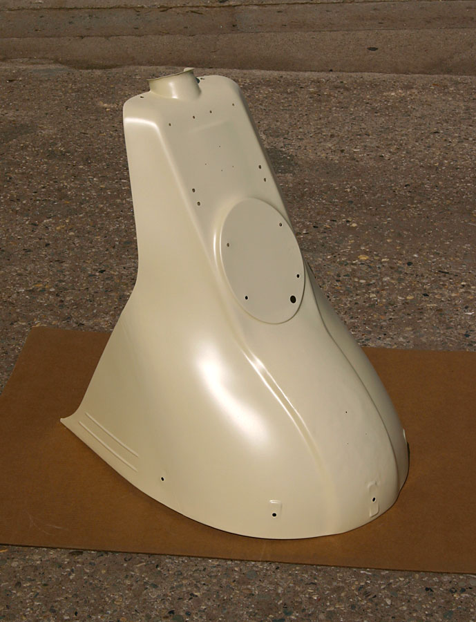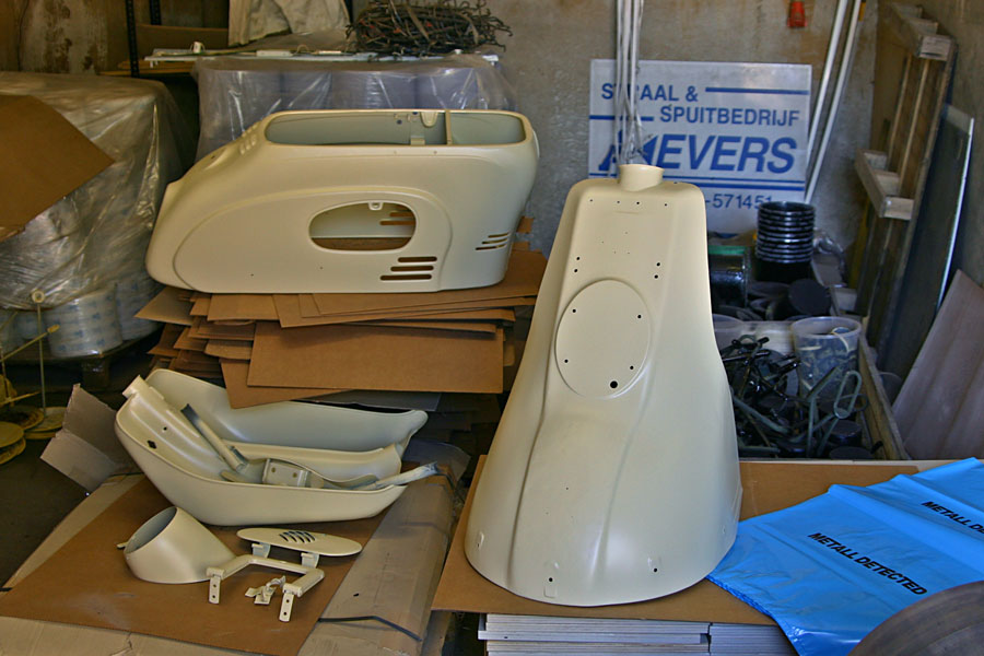 Inmiddels is het afgenomen plaatwerk bij Straalbedrijf Evers in Ederveen chemisch ontlakt, gestraald en in epoxy primer gezet. Echt slechte plekken zijn er niet tevoorschijn gekomen, maar het front moet wel geplamuurd worden.
